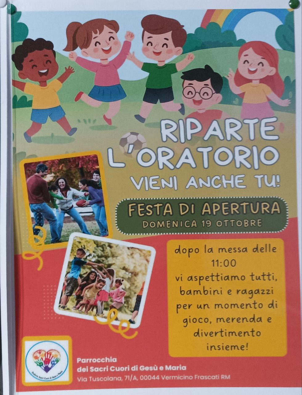Ogni domenica, dopo la Celebrazione Eucaristica delle 11, bel tempo permettendo, sono in programma attività di gioco e animazione per bambini e ragazzi.